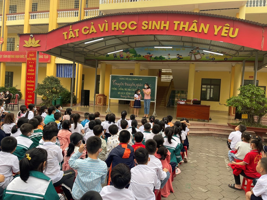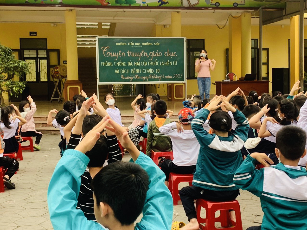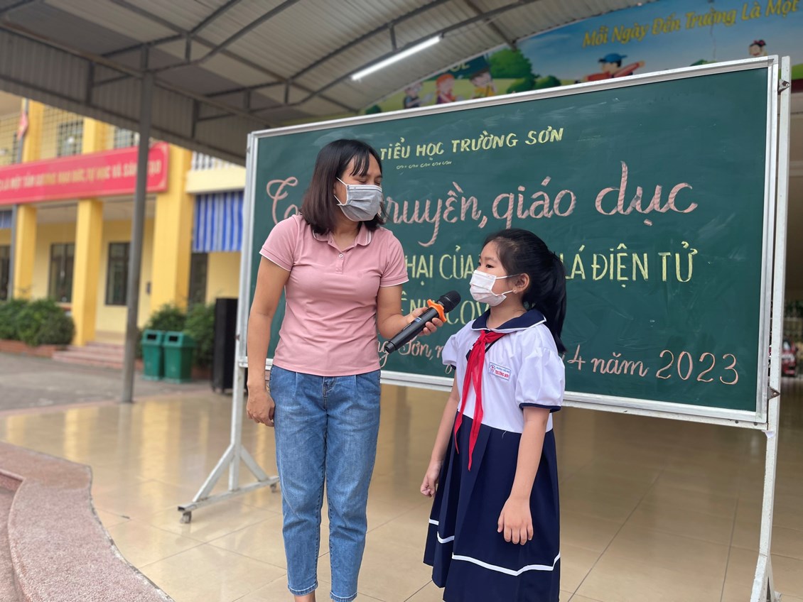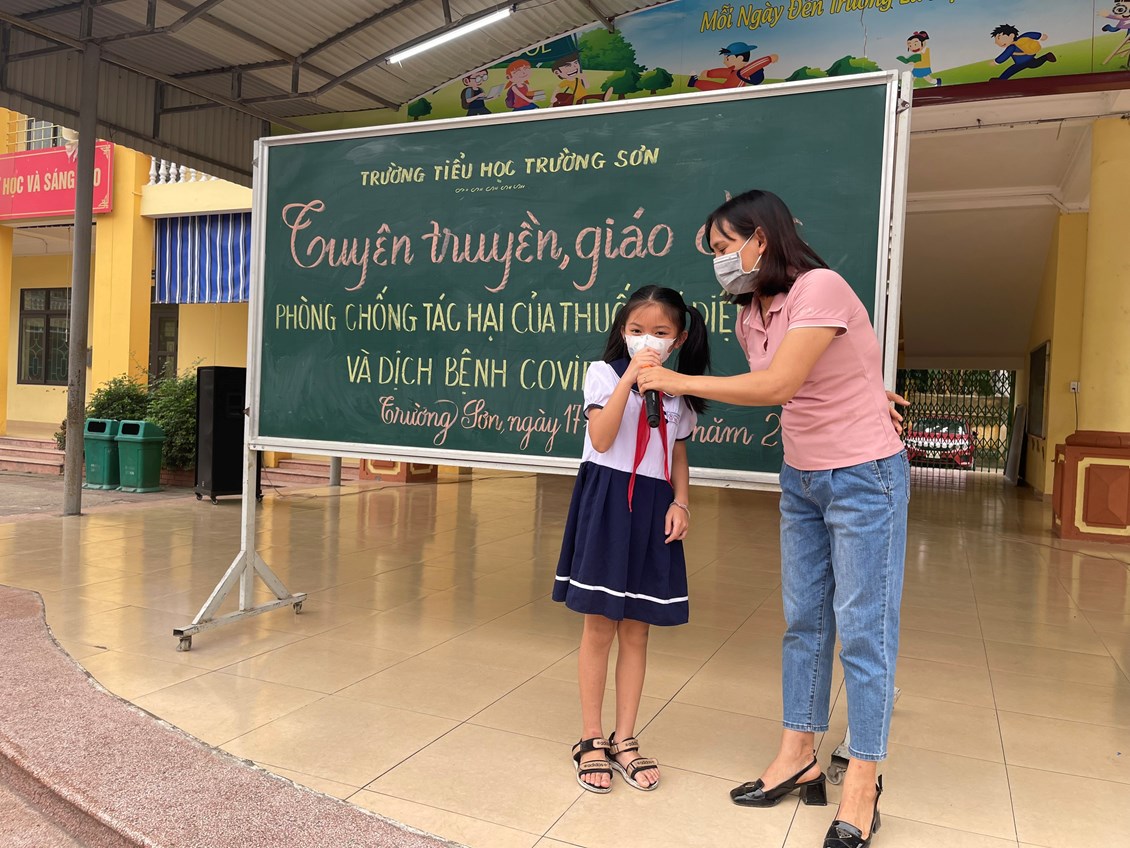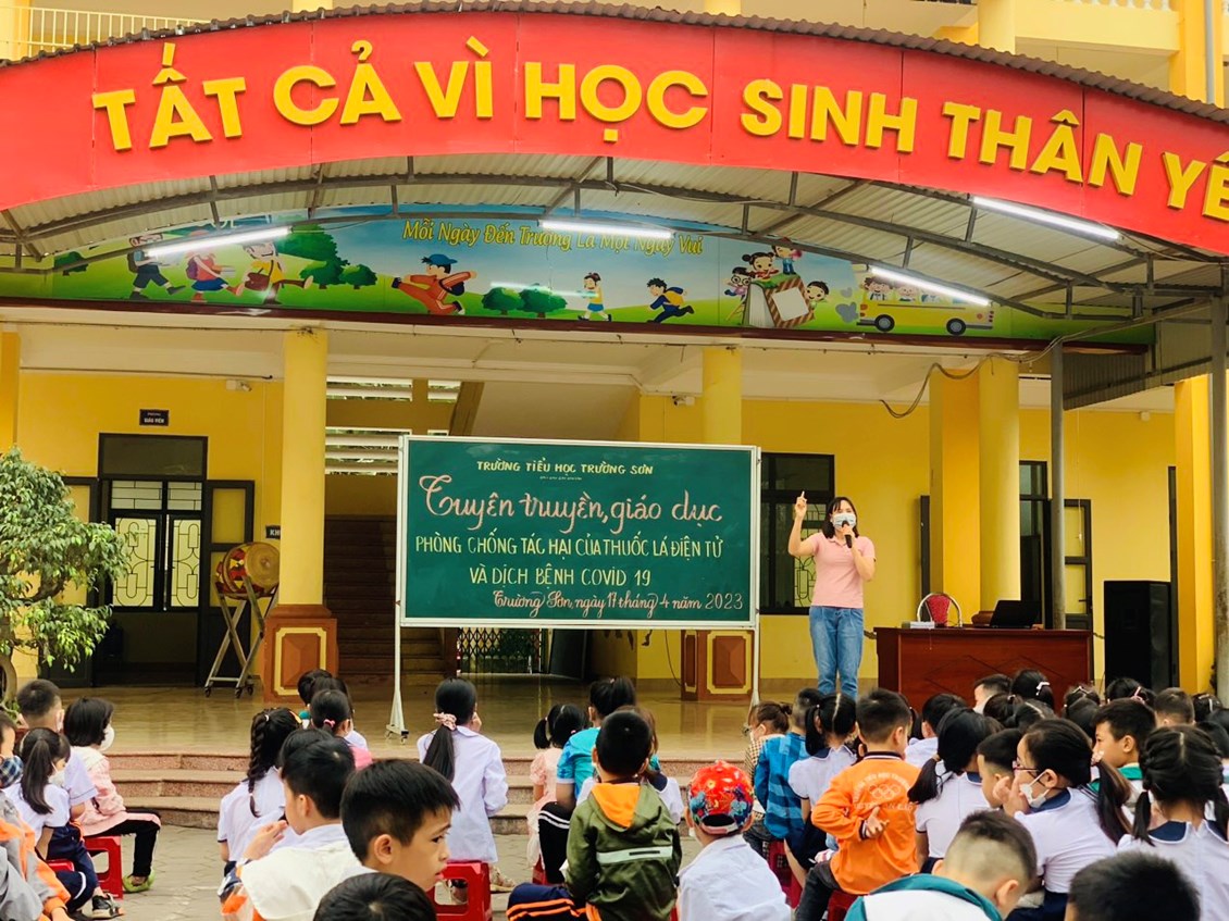 Sáng ngày 17 tháng 4 năm 2023, Trường Tiểu học Trường Sơn long trọng tổ chức buổi Tuyên truyền, giáo dục phòng, chống tác hại của Thuốc lá điện tử và Dịch bệnh Covid 19. Tại buổi tuyên truyền các thầy cô và các em học sinh toàn trường đã được tìm hiểu về tác hại của thuốc lá điện tử và các biện pháp phòng chống dịch bệnh Covid 19 qua trò chơi Rung chuông vàng. Các em học sinh rất hào hứng và tích cực trao đổi, phát biểu ý kiếntại buổi tuyên truyền.