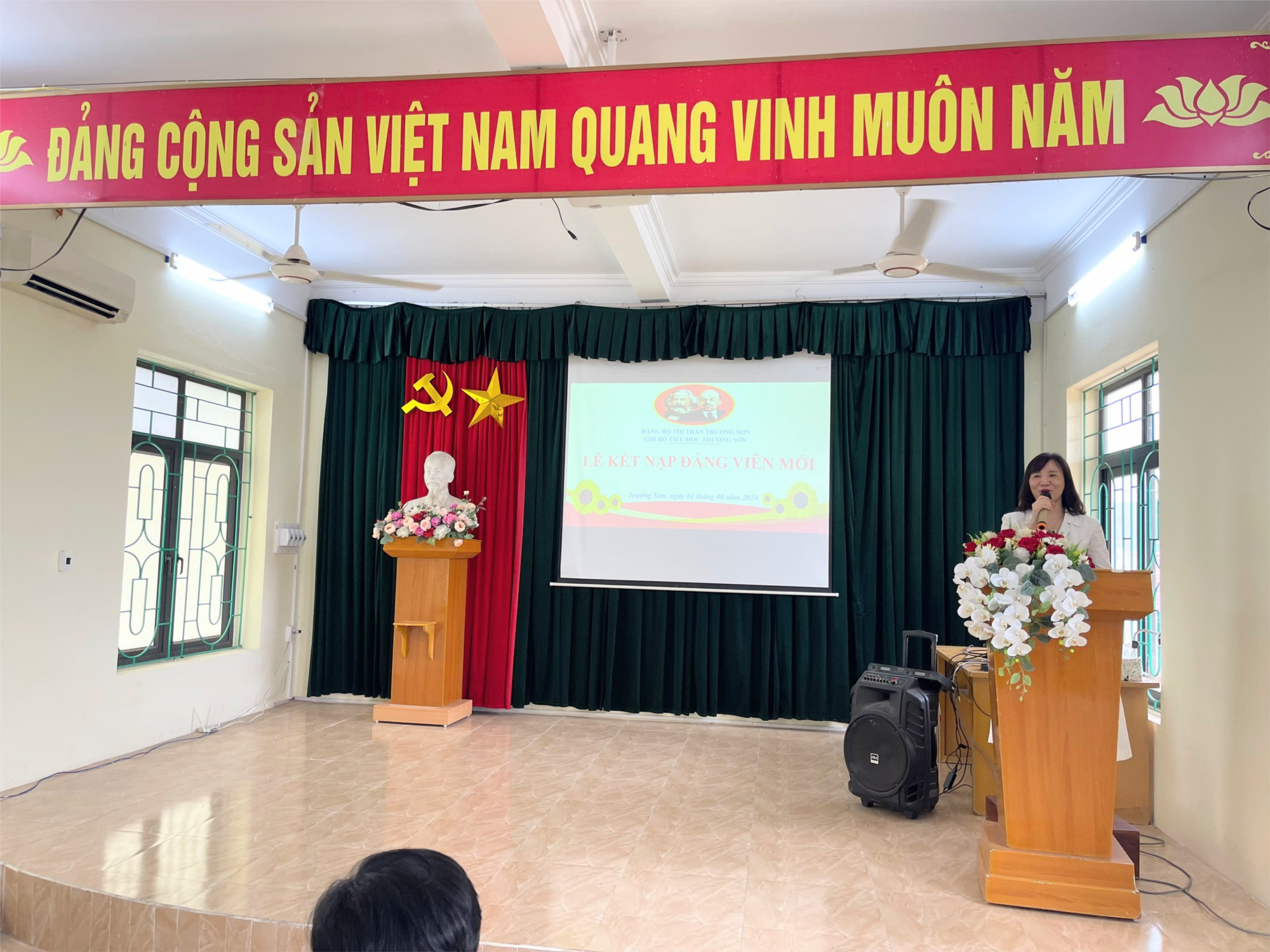 Được sự đồng ý của Đảng ủy thị trấn Trường Sơn, ngày 01/8/2024, Chi bộ Trường Tiểu học Trường Sơn tổ chức Lễ kết nạp Đảng viên mới cho 02 quần chúng ưu tú: đ/c Nguyễn Phương Mai và đc Hoàng Thị Hải .