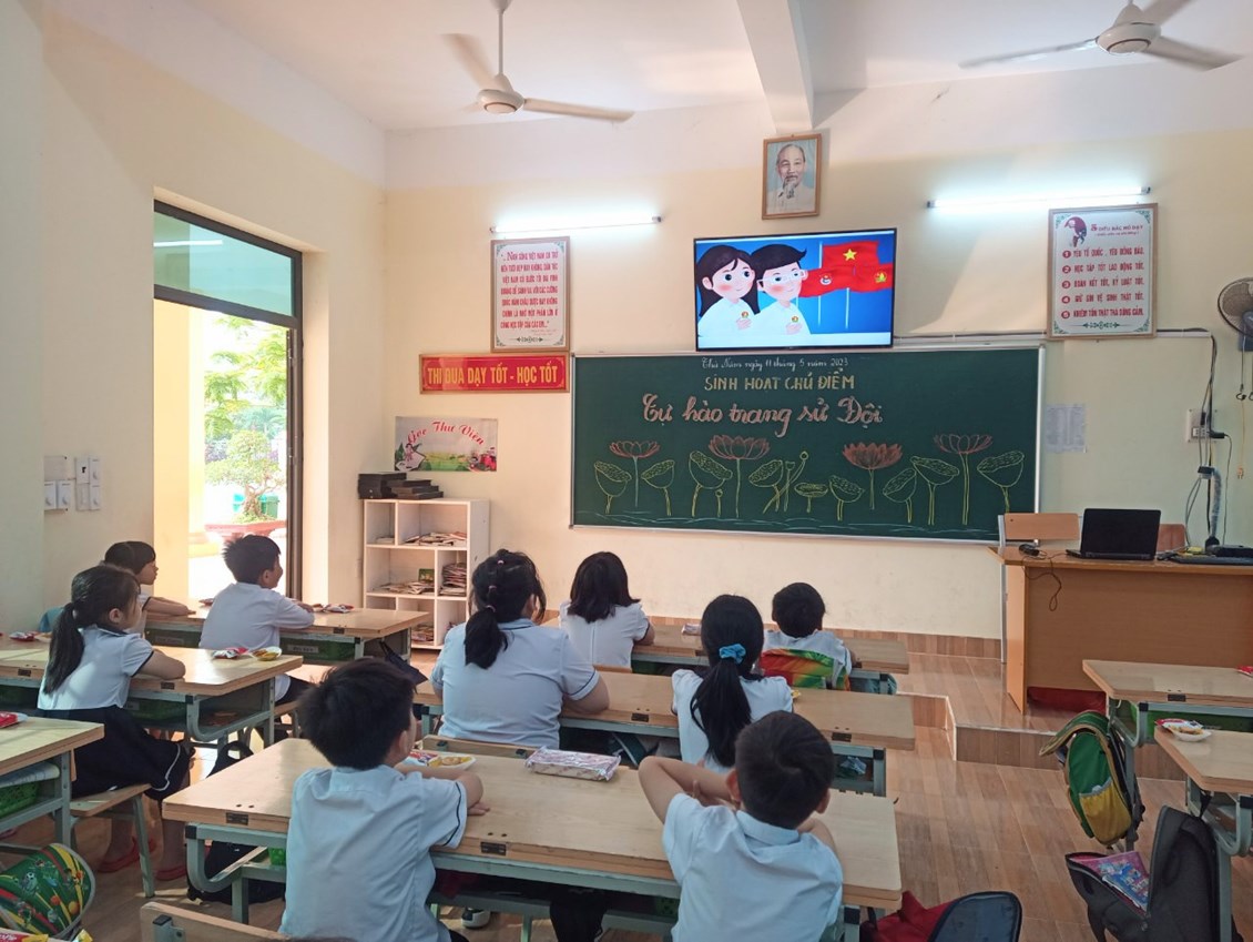 Chào mừng 82 năm ngày thành lập Đội TNTP Hồ Chí Minh ( 15/05/1941 – 15/05/2023), Liên đội trường Tiểu học Trường Sơn đã tổ chức sinh hoạt chi đội, lớp nhi đồng chủ điểm tuyên truyền lịch sử về Đội TNTP Hồ Chí Minh, Noi gương anh Kim Đồng nhằm khơi gợi niềm tự hào và thôi thúc tình yêu với màu khăn quàng đỏ, với đất nước Việt Nam và đặc biệt là gửi những lời chúc tốt đẹp đến các thế hệ phụ trách Đội, các Đội viên, Thiếu niên, Nhi đồng trên mọi miền Tổ quốc.