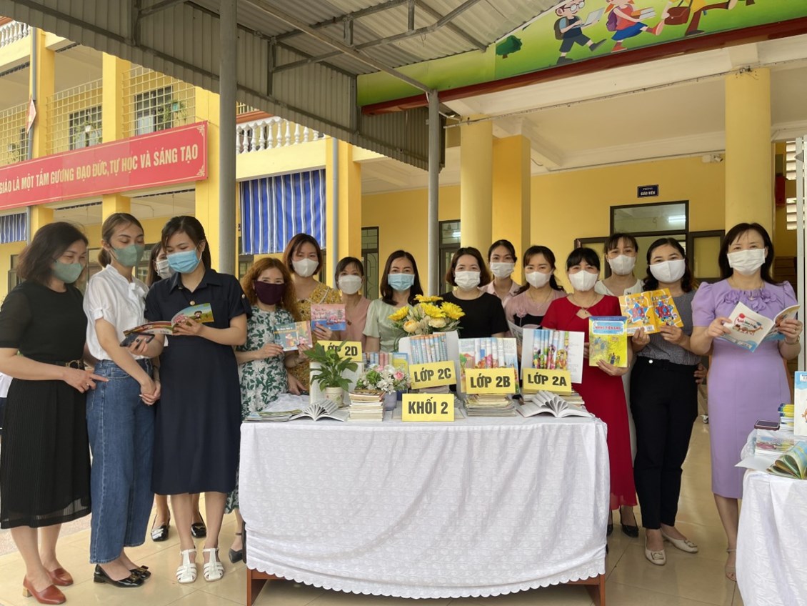 * Giới thiệu gian trưng bày sách và Gian sách ủng hộ của GV và HS: Kết quả Thư viện của trường đã được bổ sung gần một nghìn bản Sách về các lĩnh vực như: Trruyện cổ tích, Hỏi đáp nhanh, kiến thức về TNXH, Khoa học…