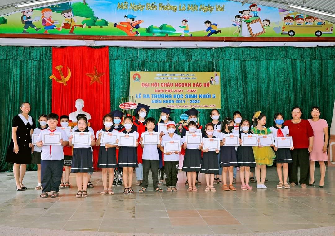 Hưởng ứng các hoạt động chào mừng kỉ niệm 132 năm ngày sinh của Chủ tịch Hồ Chí Minh kính yêu và 81 năm ngày thành lập Đội Thiếu niên tiền phong Hồ Chí Minh, sáng thứ năm ngày 19/5/2022, trường Tiểu học Trường Sơn đã long trọng tổ chức Đại hội cháu ngoan Bác Hồ và Lễ ra trường cho học sinh lớp 5 niên khoá 2017-2022.