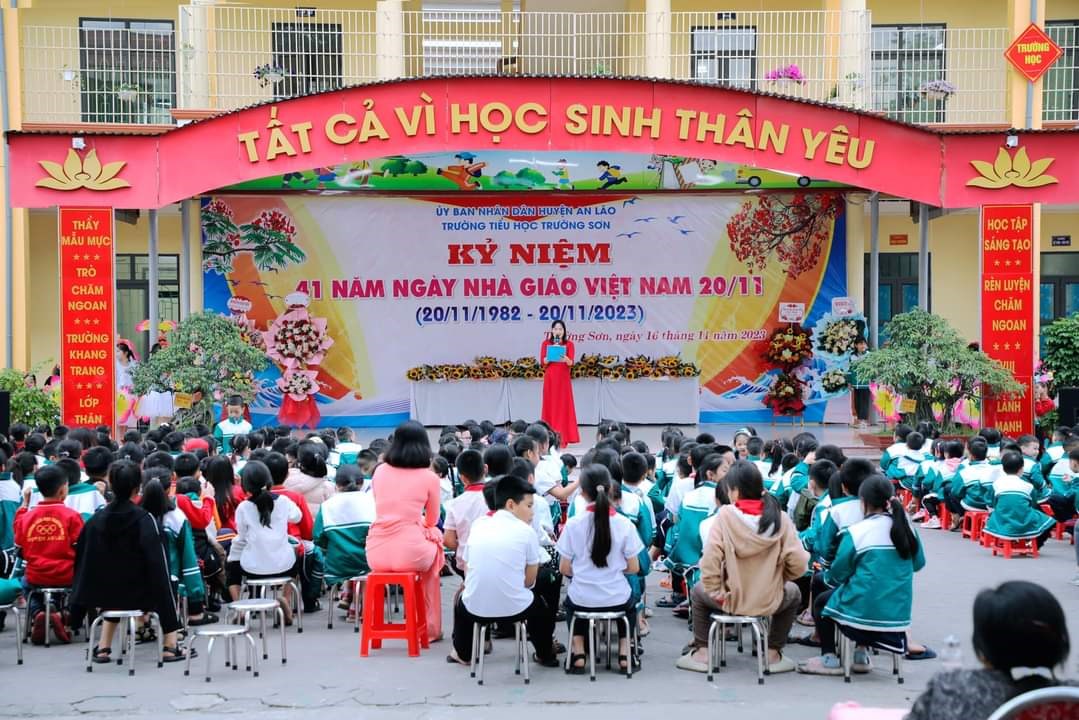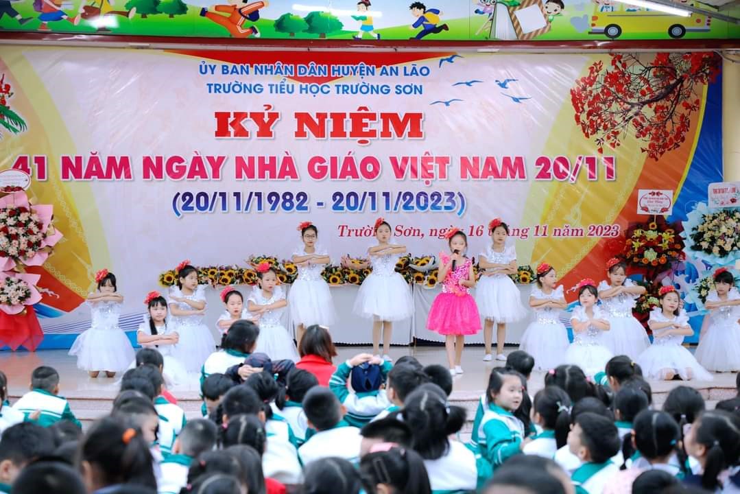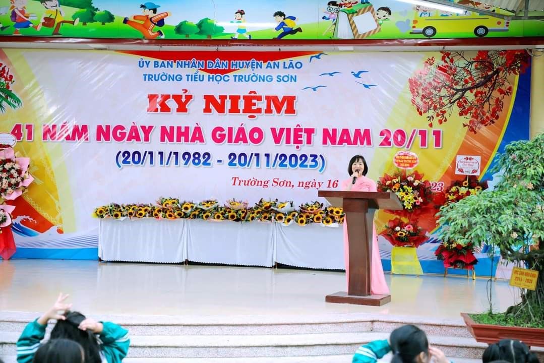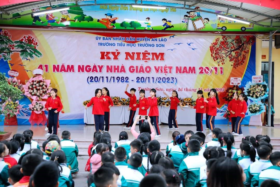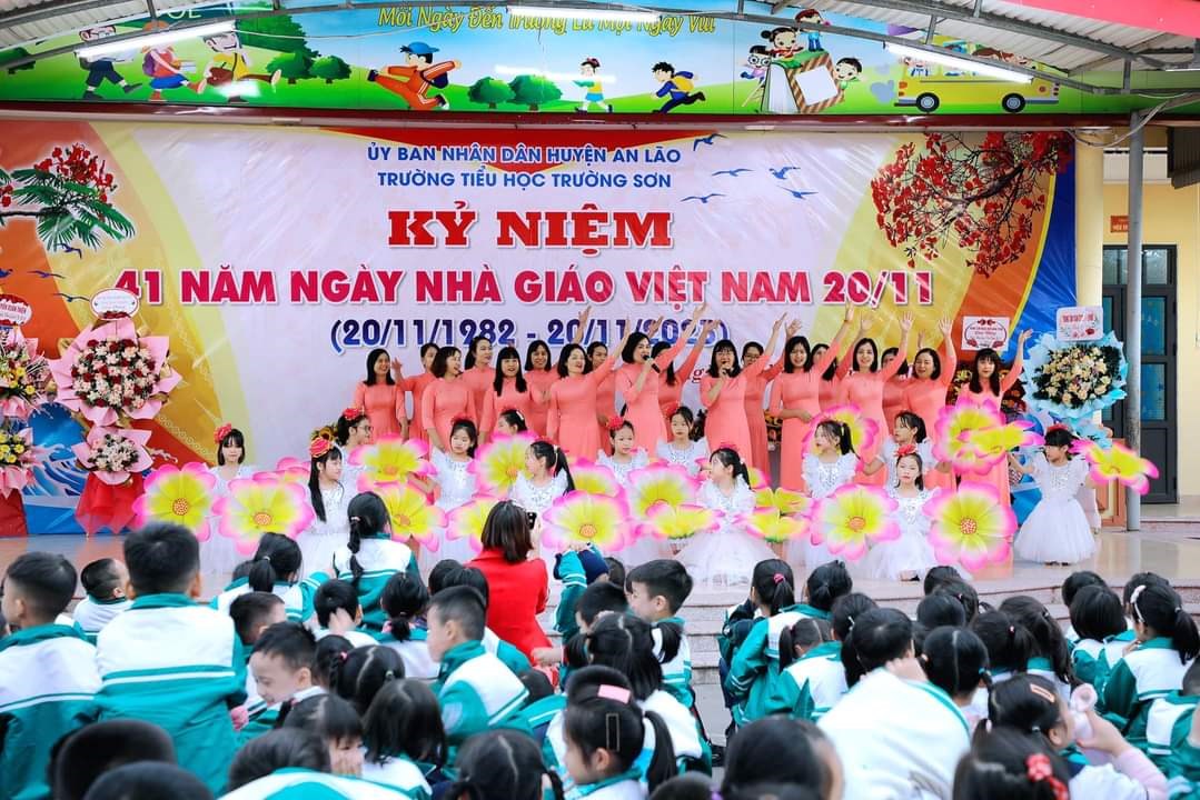Chiều ngày 16/11/2023, trường Tiểu học Trường Sơn long trọng tổ chức kỷ niệm 41 năm ngày Nhà giáo Việt Nam 20/11 và biểu duơng các thầy giáo, cô giáo đã đạt được thành tích xuất sắc trong năm học vừa qua.