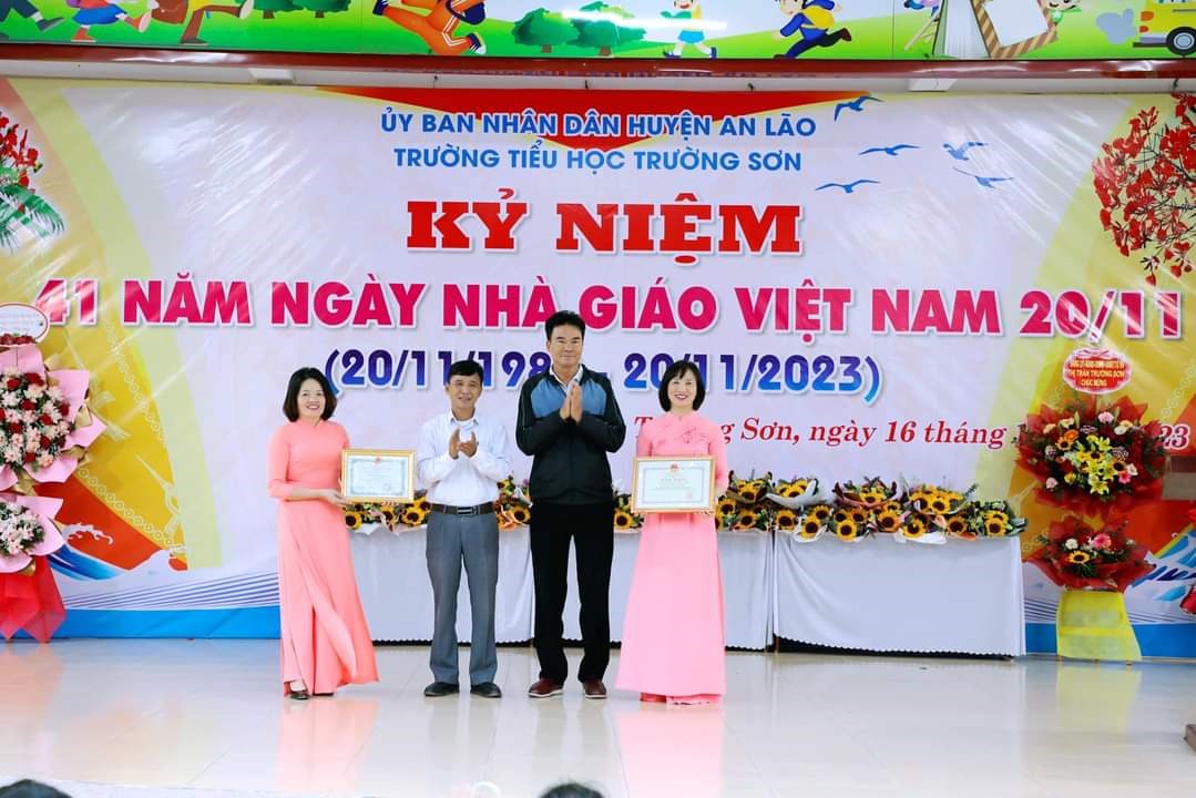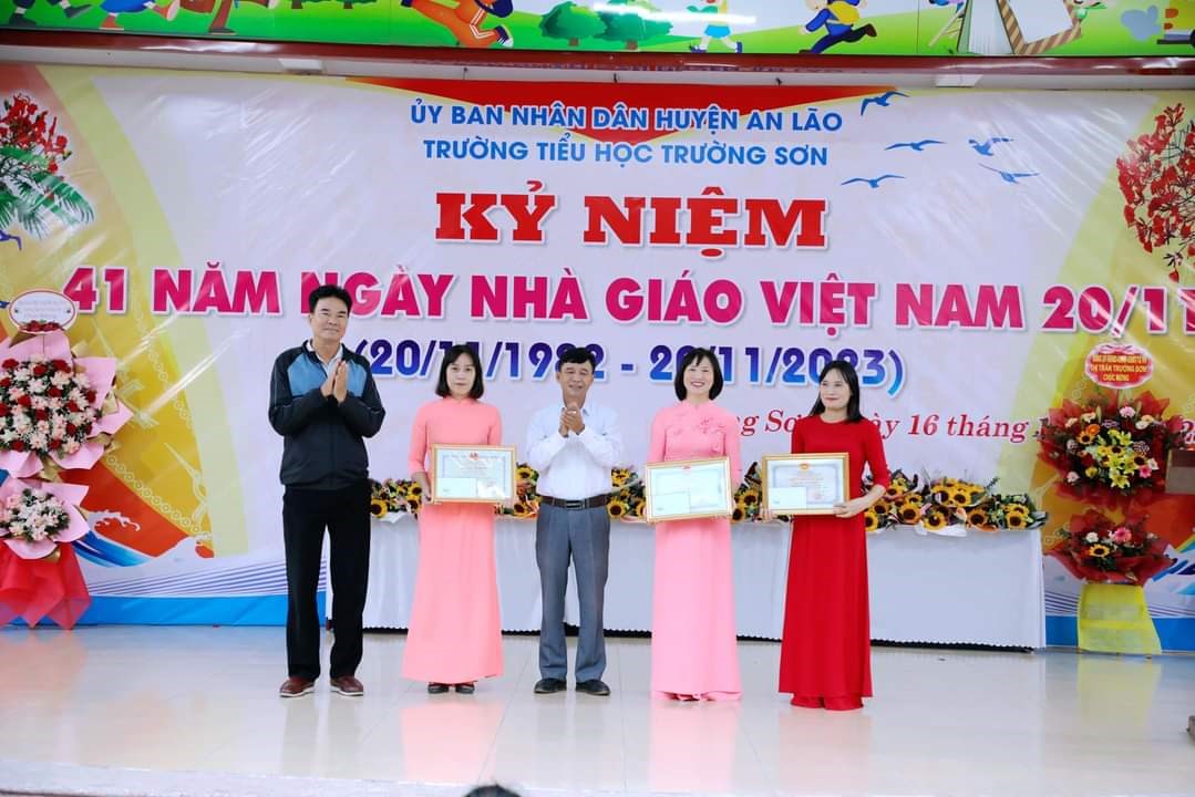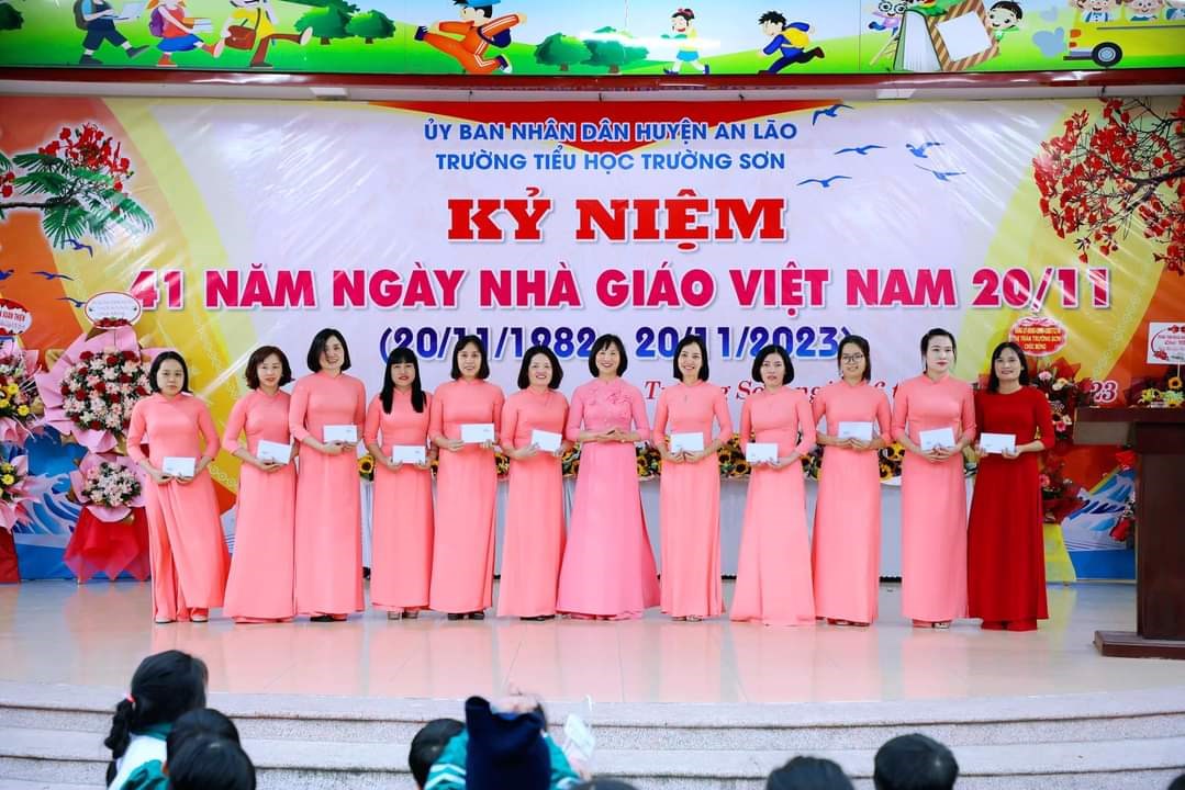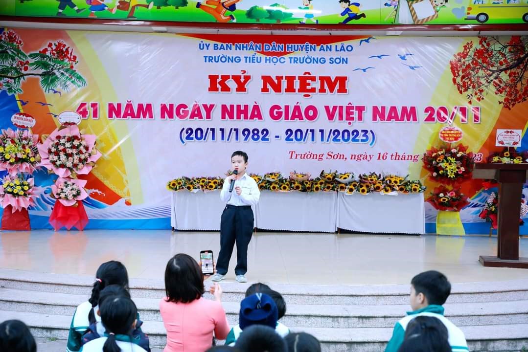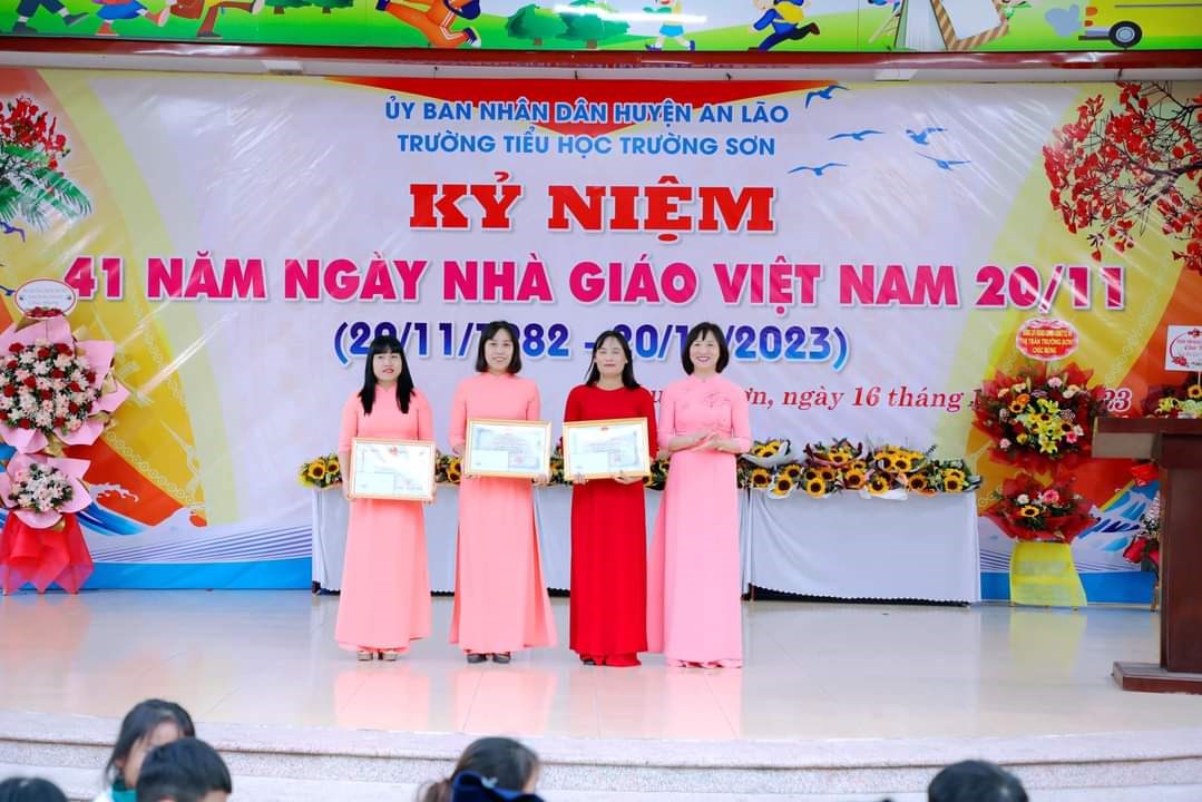 Chiều ngày 16/11/2023, trường Tiểu học Trường Sơn long trọng tổ chức kỷ niệm 41 năm ngày Nhà giáo Việt Nam 20/11 và biểu duơng các thầy giáo, cô giáo đã đạt được thành tích xuất sắc trong năm học vừa qua.