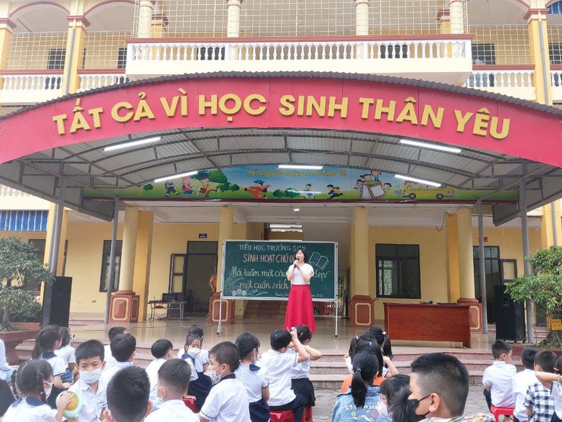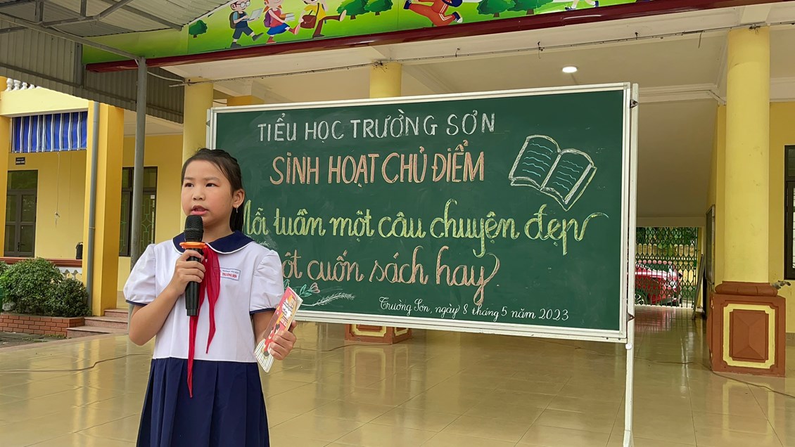 Thực hiện kế hoạch công tác Đội, sáng thứ hai ngày 8 tháng 5 năm 2023 liên đội TH Trường Sơn long trọng tổ chức sinh hoạt Liên đội dưới cờ với chủ điểm: Mỗi tuần một câu chuyện đẹp, một cuốn sách hay. Mỗi câu chuyện, mỗi cuốn sách được các em học sinh truyền đạt đều mang ý nghĩa giáo dục sâu sắc. Đây là hoạt động thường niên của các lớp nhi đồng, các chi đội nhằm nâng cao vai trò của việc đọc sách báo đồng thời rèn cho các em học sinh thói quen đọc sách mỗi ngày.