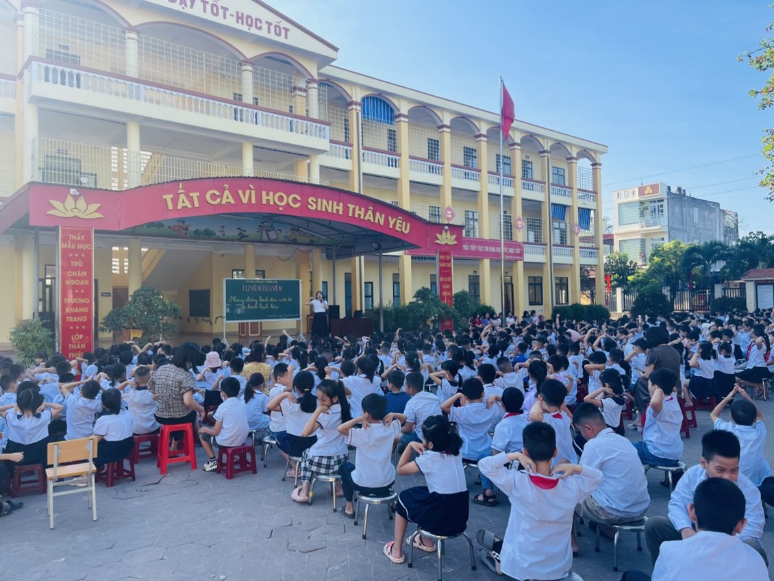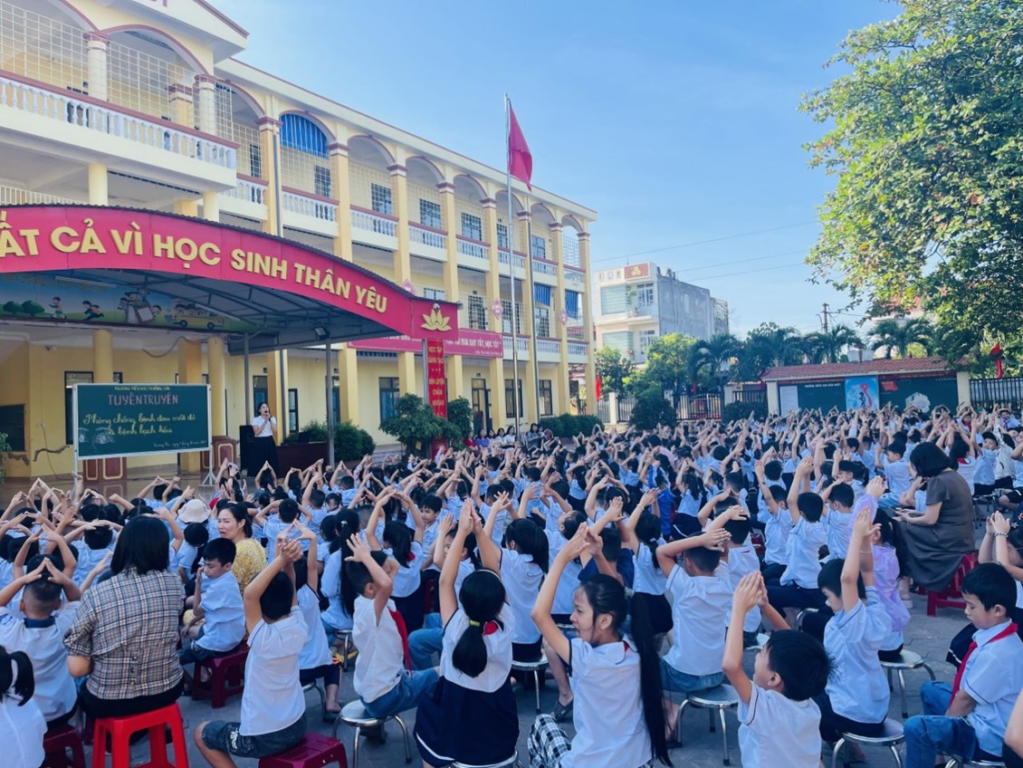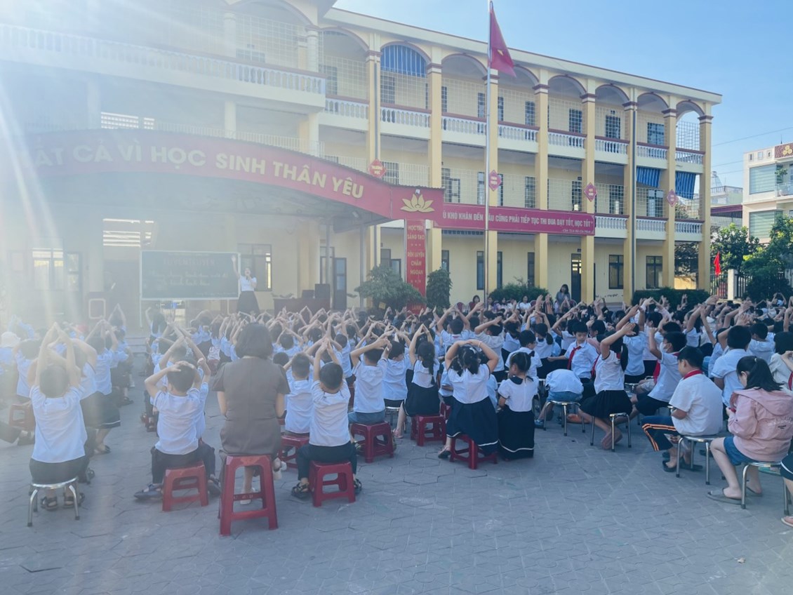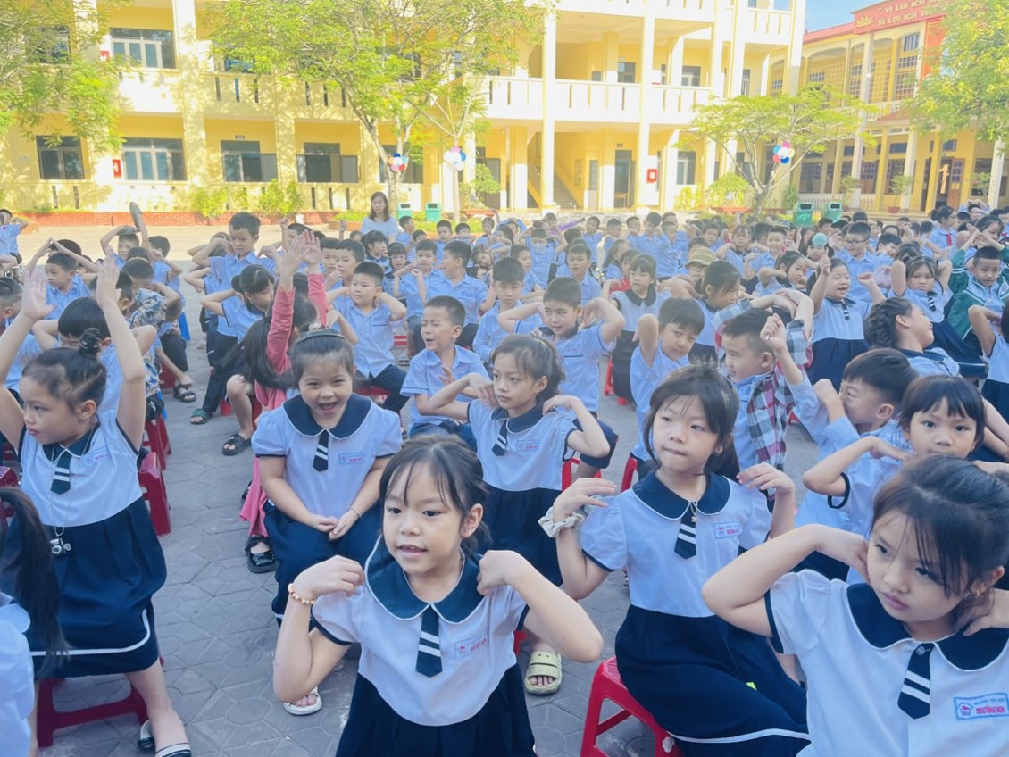 Các em HS rất hào hứng và phấn khởi tham gia các hoạt động của buổi lễ.