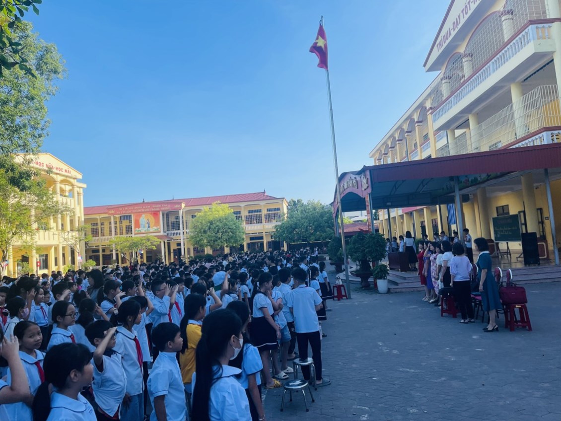 Cùng dự có các cô trong BGH, các thầy cô chủ nhiệm và 802 học sinh trong toàn liên đội.
