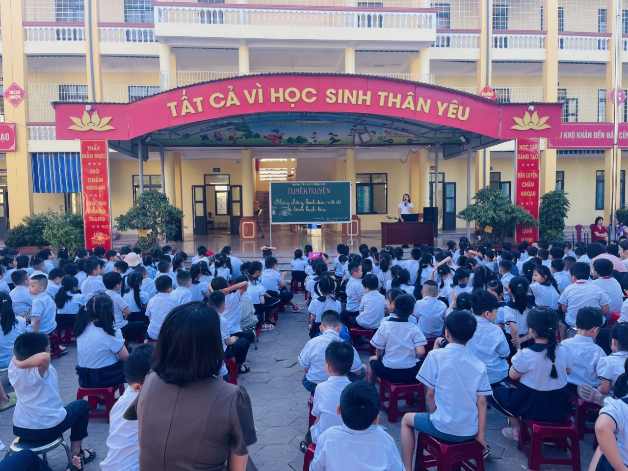 Sáng ngày 9/10 Liên đội TH Trường Sơn tổ chức lễ chào cờ tháng 10