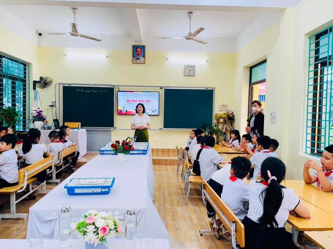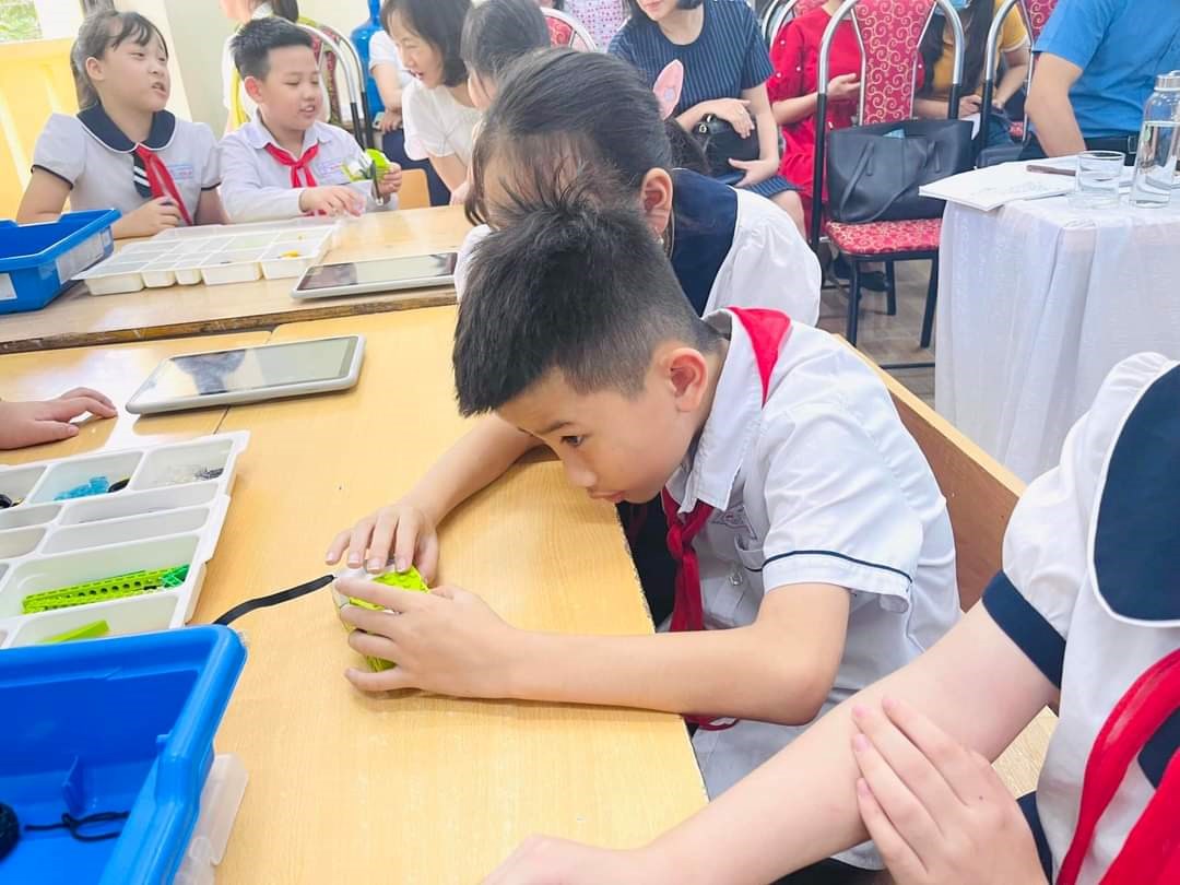 Qua tiết dạy các em được tìm hiểu về chương trình giáo dục STEAM,phần mềm lập trình Education Wedo 2.0, tìm hiểu về Robot.