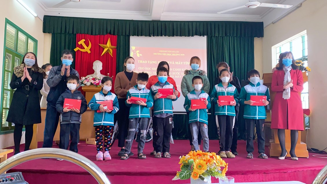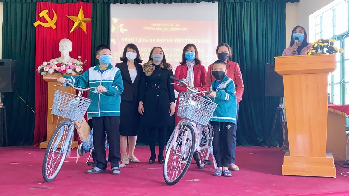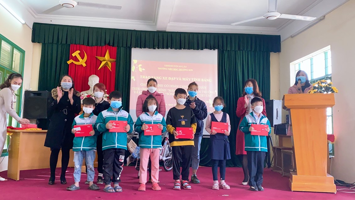 Sáng ngày 05/01/2022 trường TH Trường Sơn trao tặng 2 chiếc xe đạp cho học sinh theo chương trình “Nâng bước em đến trường” và 15 máy tính bảng cho học sinh theo chương trình “Sóng và máy tính cho em” cho các em HS có hoàn cảnh khó khăn. Đến dự chương trình có các bậc phụ huynh cùng các em học sinh được nhận quà.