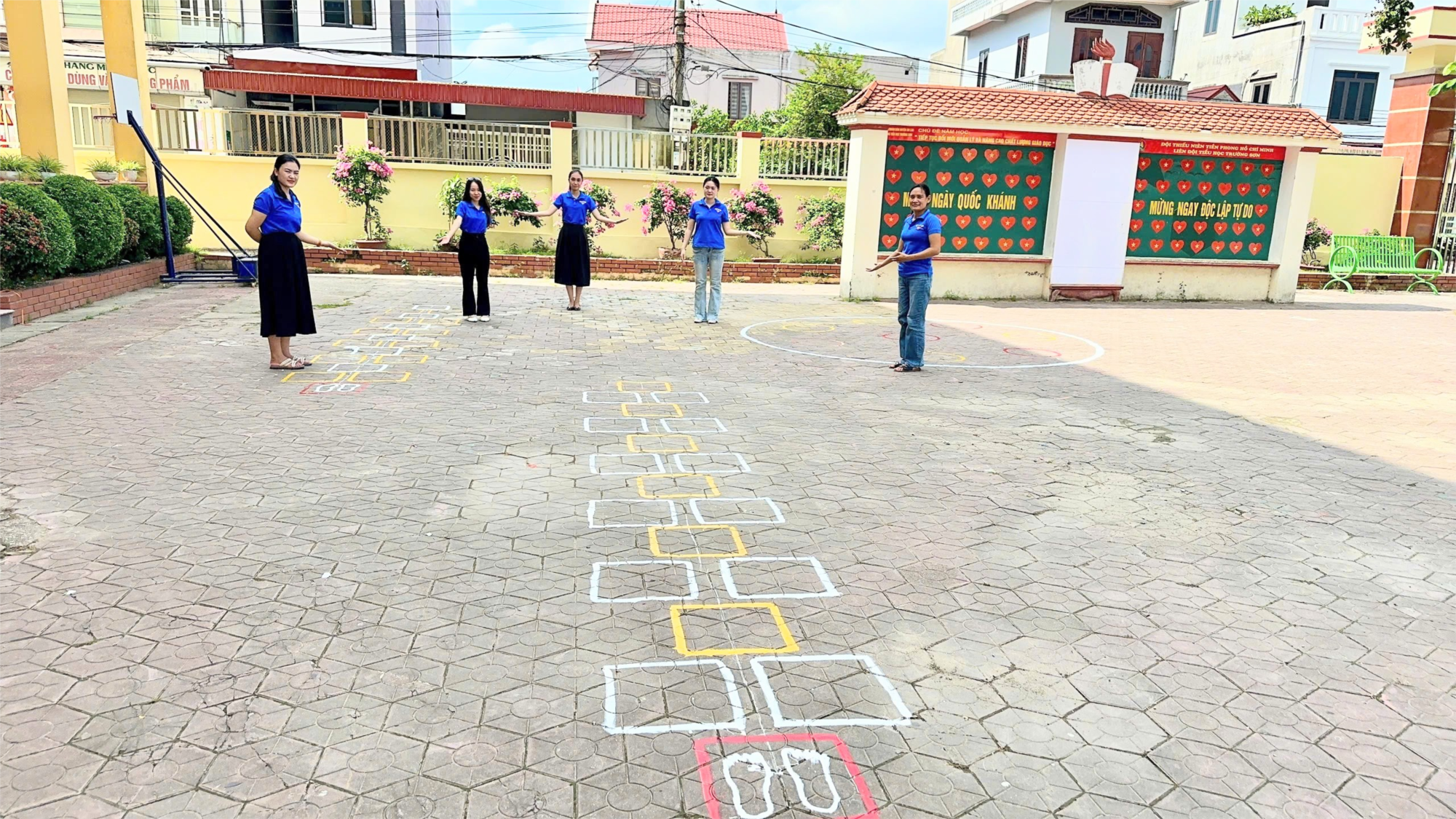 Với tinh thần xung kích, sáng tạo, tình nguyện vì học sinh thân yêu, các đoàn viên thanh niên trong chi đoàn đã cùng nhau lên ý tưởng, thiết kế và trực tiếp kẻ vẽ nhiều trò chơi dân gian, trò chơi vận động và trò chơi học tập trên sân trường như: Nhảy lò cò, vòng tròn sắc màu, thăng bằng kiến thức,...