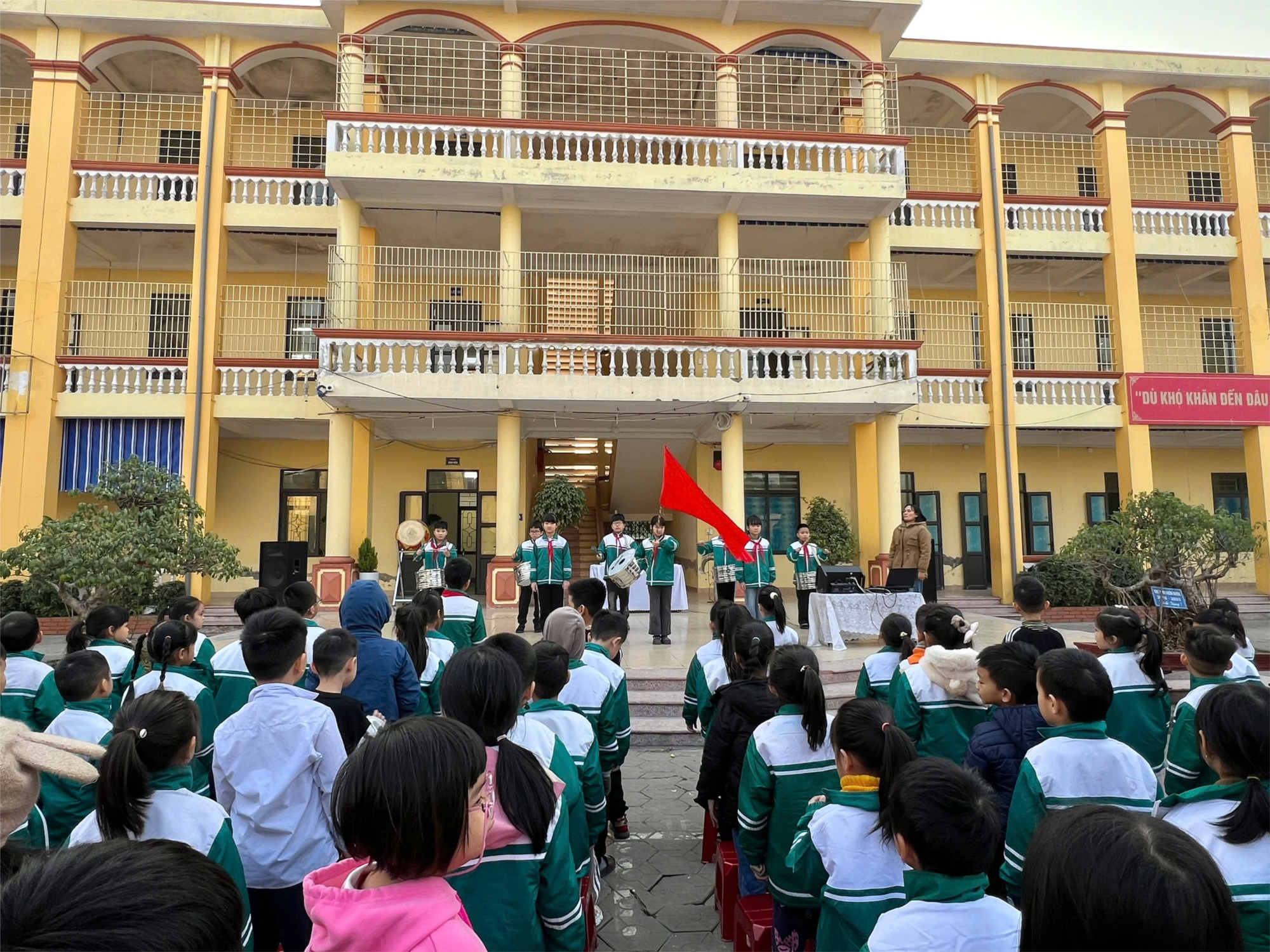 Cô Tổng phụ trách Đội đã giới thiệu ý nghĩa lịch sử của Ngày truyền thống Học sinh - Sinh viên Việt Nam, khơi dậy tinh thần yêu nước, niềm tự hào dân tộc và ý thức trách nhiệm học tập, rèn luyện trong mỗi đội viên, nhi đồng.
