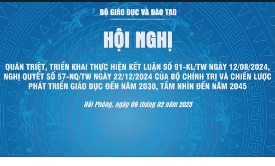 Chiều 6/2/2025, Bộ GD&ĐT tổ chức Hội nghị quán triệt, triển khai thực hiện Kết luận số 91-KL/TW, Nghị quyết số 57-NQ/TW của Bộ Chính trị và chiến lược phát triển GD đến năm 2030, tầm nhìn đến năm 2025.